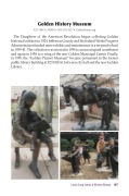 The Daughters of the American Revolution began collecting Golden historical artifacts in 1924. Je erson County and the federal Works Progress Administration funded more exhibits and maintenance in a restored school in 1939-41. The collection was moved in 1954 to an unoccupied courthouse and again in 1958 to a wing of the new Golden Municipal Center. Finally, in 1995, the “Golden Pioneer Museum” became permanent in the former public library building at 923 10th St. between city hall and the new Golden Library.