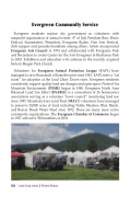 Volunteers for Evergreen Animal Protection League (EAPL) have managed to save thousands of homeless pets since 1981. EAPL rents a “cat room” for adoption at the local Chow Down store. Evergreen residents consistently support quality land use changes and open space. Protect Our Mountain Environment (POME) began in 1980. Evergreen North Area Balanced Land Use E ort (ENABLE) is a consortium of 26 homeowner associations serving as a volunteer “town council” monitoring land use since 1985. Mountain Area Land Trust (MALT) volunteers have managed to preserve 20,808 acres of land, including Noble Meadow, Blair Ranch, and Beaver Brook Water Shed since 1992. There are many more active community organizations. The Evergreen Chamber of Commerce began in 1927 and serve 500 members in 2016.