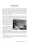 bu alo herd acquired from Yellowstone Park in 1914. Denver built picnic tables, shelters, ball elds, trails, a campground, and an excellent youth nature camp. The Genesee Park preservation expanded to total 2,413 aces by 2014.